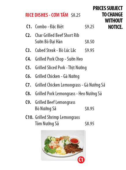 Rice Dishes (Cơm Tấm) ………………………….. $8.25